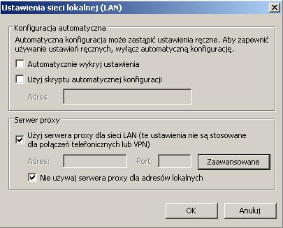 5. W oknie Serwer Proxy zaznaczyć jego użycie, i wejść w zakładkę zaawansowane.